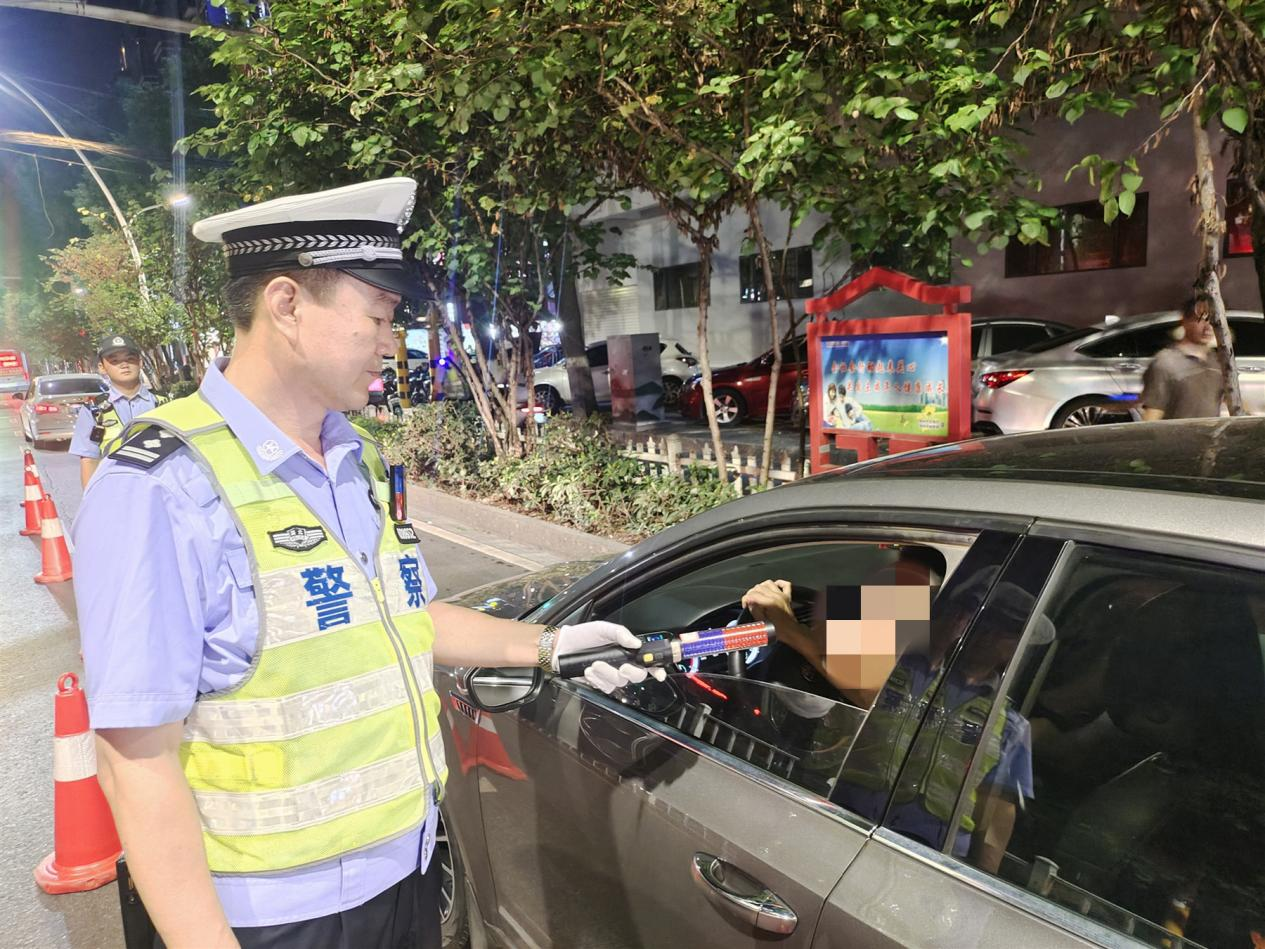 “请吹气。”8月9日晚9时,在梁子湖区沼山镇李铁铺路段,交管局梁子湖大队民警拦下一辆小型轿车。当驾驶人匡某将车窗玻璃摇下,浓烈的酒味扑面而来,经检测,匡某酒精含量为114mg/100ml,涉嫌醉酒后驾驶机动车,民警立即将其控制。三天来,全市公安交管部门设置执勤检查点23处,查处各类道路交通违法行为500余起,检查车辆3700余台。