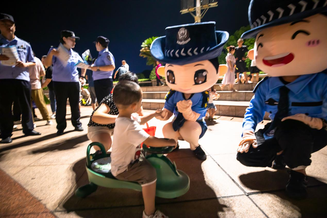 9月9日晚,在鄂城区凤凰广场,人头攒动、热闹非凡。警察玩偶与小朋友们亲切互动,刑侦支队反诈民警高举反诈宣传提示牌,以反诈口诀、展板展示、发放宣传页、现场答疑释惑等形式向纳凉的群众宣讲法律知识。多角度、深层次的宣传内容赢得了在场群众的一致认可。