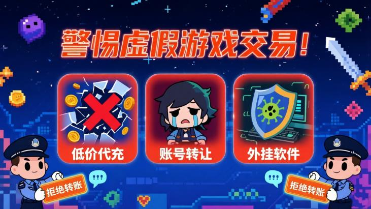 诈骗分子瞄准孩子“低价购装备、账号变现换零花钱”的需求,以“低价代充、账号转让、售卖外挂”为诱饵,诱导受害人进入陌生平台或下载非正规软件,通过共享屏幕、套取支付信息等方式骗取家庭钱财。