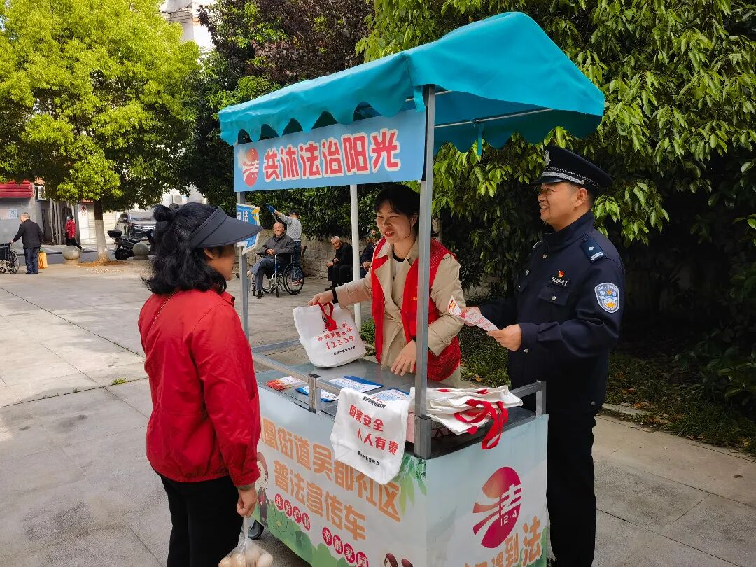 4月13日,在孙权广场,民警采用“问答互动+情景模拟”的方式,激发群众参与热情,并为回答正确的市民送上国家安全宣传小礼品。