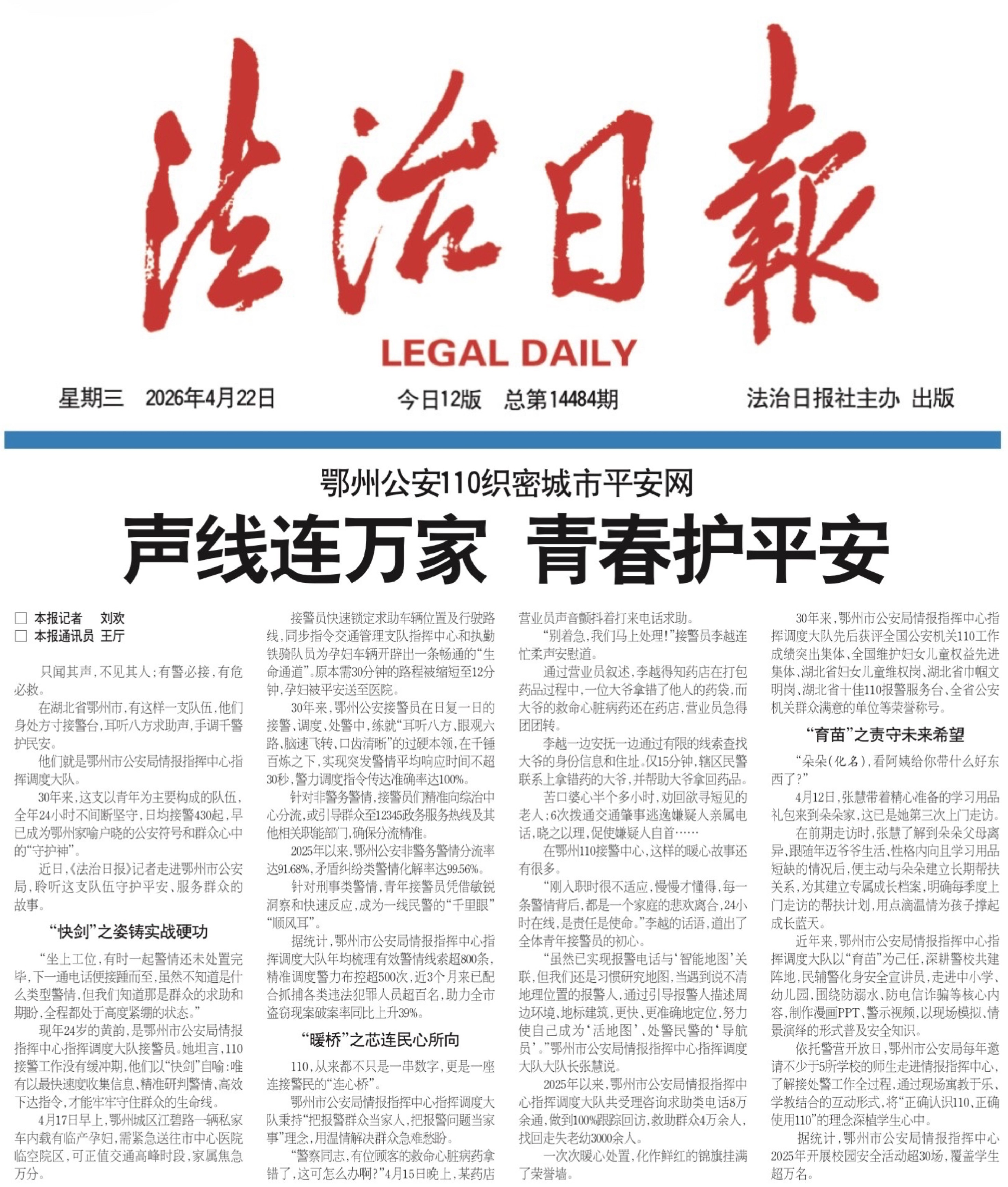 近日,《法治日报》记者走进鄂州市公安局,聆听这支队伍守护平安、服务群众的故事。