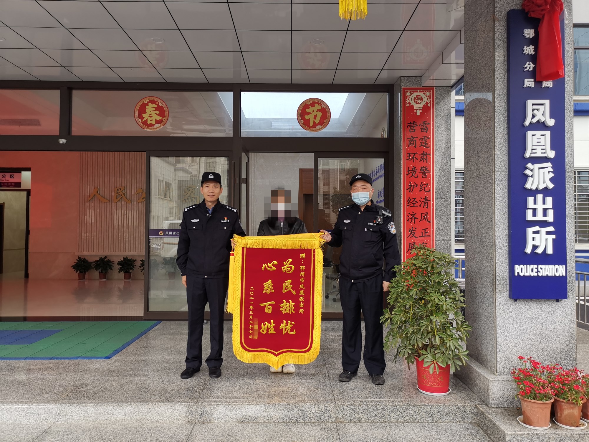 3月30日上午,曹女士特意带着锦旗来到凤凰派出所致谢,感谢派出所民警快速出警,及时救出了自己的女儿。