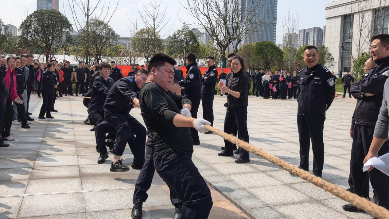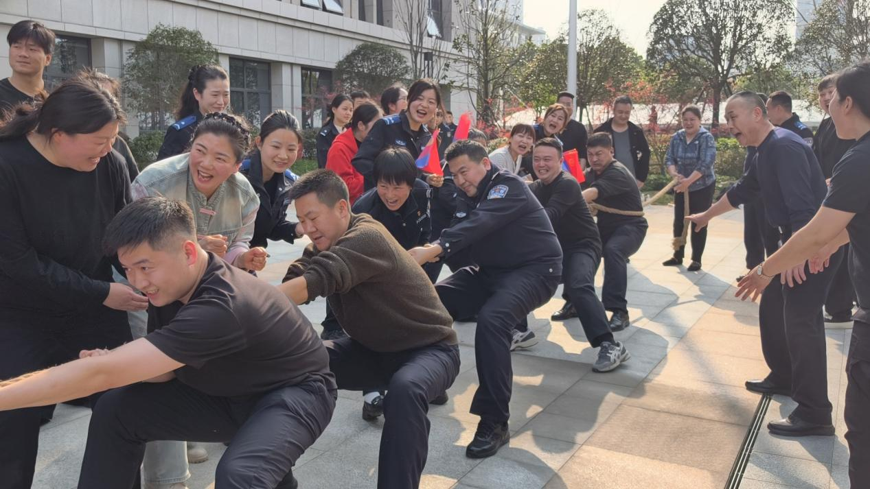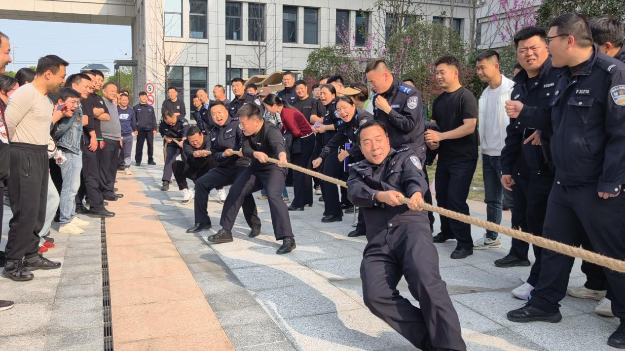 汀祖派出所与杜山派出所、古楼派出所与一支部,四支队伍率先展开对决。这是一场力量与技术的较量,更是协作与激情的比拼。队员们紧握长绳,双脚蹬地,身体后仰,咬紧牙关,为了团队荣誉齐心协力、拼尽全力。场边,啦啦队员们热情高涨,挥舞着双臂鼓劲呐喊,为战友们传递信心、加油打气。