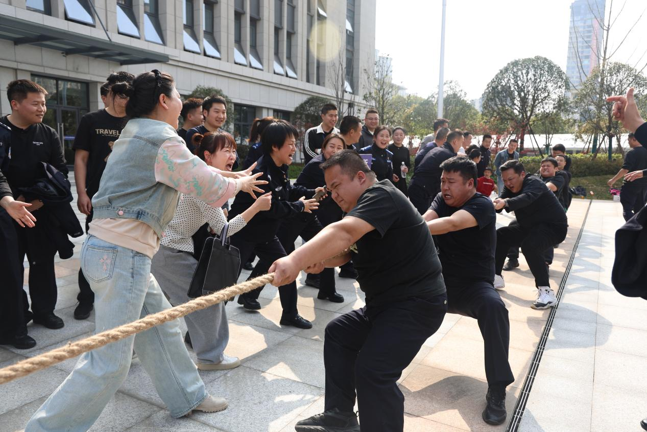 一根绳、一股劲、一条心!长绳两端,队员们配合默契、不遗余力,不到最后一秒绝不放弃。力量、意志、潜能,在这一刻爆发;团结、友谊、合作,在赛场上汇聚。绳子中央的红绸带左右摇摆,赛况时而胶着,时而逆转。在一浪高过一浪的呐喊声中,一场场精彩对决轮番上演,参赛选手们用行动诠释着齐心协力的团队意识和奋勇争先的拼搏精神。